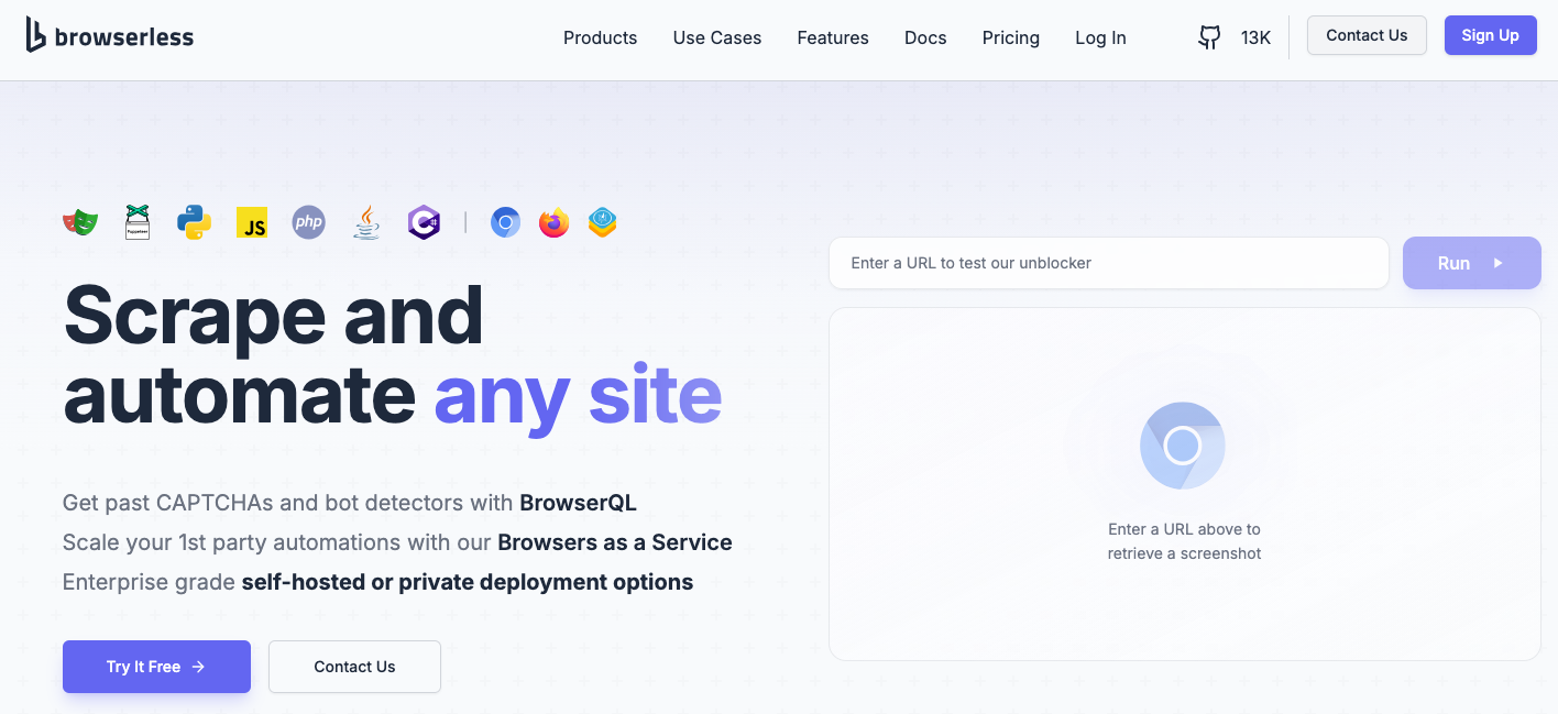 Browserless provides cloud-based headless Chrome infrastructure as a service, essentially, it lets you run Puppeteer and Playwright scripts in the cloud without managing browser instances yourself. For scraping modern web applications built on React, Angular, or Vue (where content is rendered client-side by JavaScript), a headless browser is often the only viable approach, and Browserless makes that infrastructure accessible.