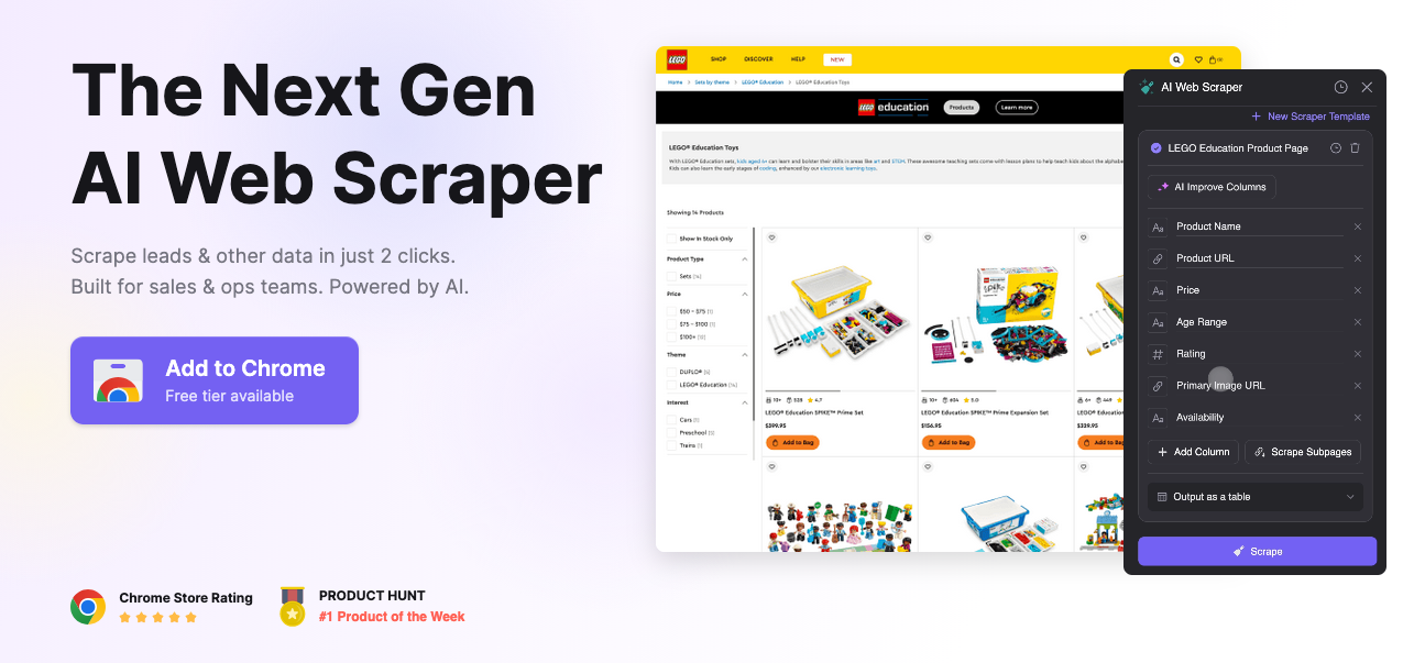 Thunderbit is the most notable new entrant in the free web scraping tools space in recent years, bringing AI-assisted extraction to a genuinely accessible interface. Rather than requiring you to define CSS selectors or write XPath expressions, Thunderbit uses an AI layer to automatically identify and label data fields on any page, you describe what you want in plain language, and the tool figures out how to get it.