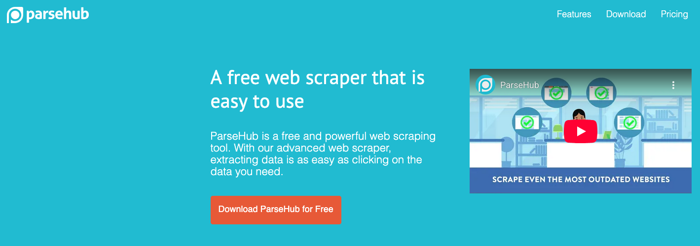 ParseHub is a desktop application that uses a point-and-click interface to build scraping workflows capable of handling some surprisingly complex scenarios: infinite scroll, dropdown menus, AJAX-loaded content, and multi-level navigation. You train the scraper by clicking on elements in a built-in browser, and ParseHub learns the pattern and applies it across pages.