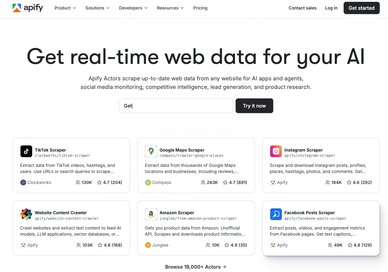Best for: Developers who want a cloud-based scraping platform with ready-made actors